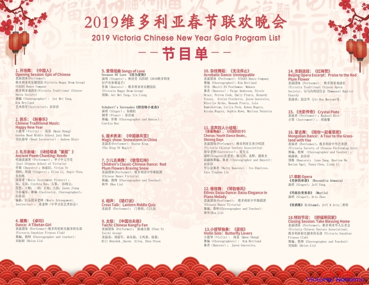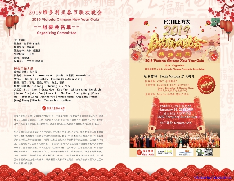 她是维多利亚华人最大的华人欢聚,是我们维多利亚全体华人的年夜饭,是凝聚我们维多利亚华人社团、艺术家、文艺爱好者的一场视听盛宴。
