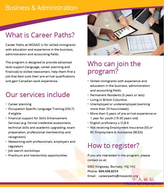 " g5 t; A5 [0 {; e5 ]4 [$ o6 ^快來加入 MOSAIC 免費提供的 Career Paths Program (技術移民職業規劃項目) ! " o6 m: z* _# C% K+ Y+ N