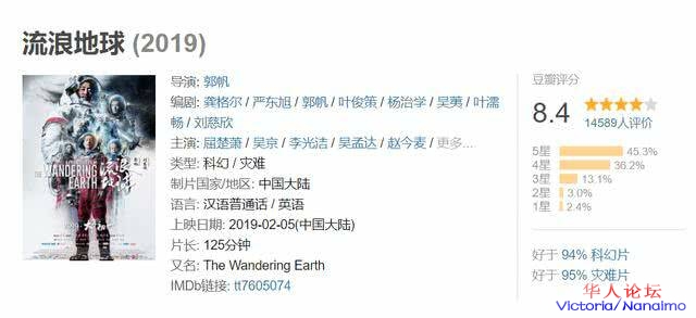 第一批看过的观众几乎都表示值回票价,非常的好看。豆瓣评分更是高达8.4。《纽约时报》更是用了一大哥版面发文称“中国电影工业终于跃入“太空时代”,大赞《流浪地球》是中国电影工业黎明的新开端。