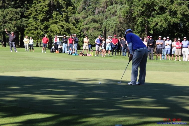 最后一洞,倒数第二组,冠军向我们走来,以小鸟结束