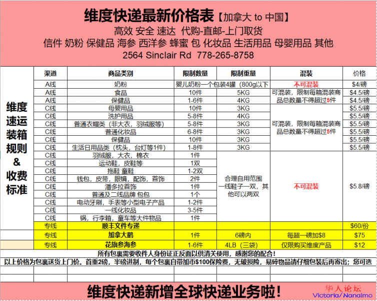 来维度超市,维度快递,运费仅仅$4一磅