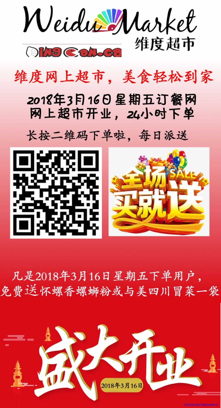 » 维度超市和订餐网全面合作,美食送到家。。每日派送