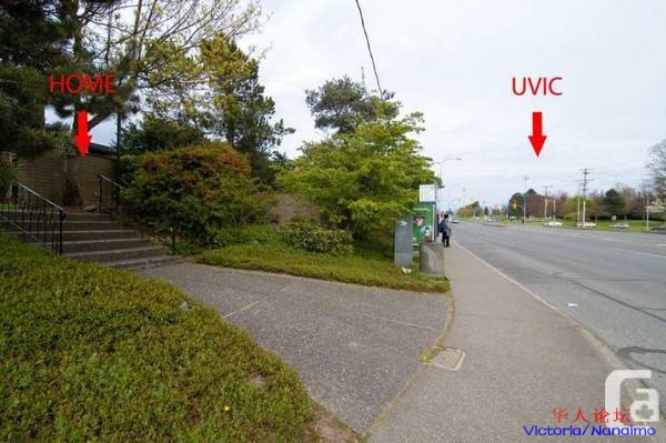 公寓门口有公巴16,26,38 或步行10分钟到 UVic总站,10分钟到UVic ring road, 15分钟到 fairway Starbucks save on food及 University Heights Plaza,十分方便上学及消费