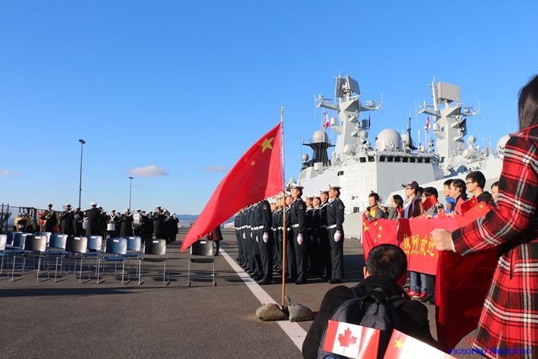 我们将在 Ogden Point 码头欢迎军舰入港。: _3 j9 ^& r$ P7 e) Q2 F; F