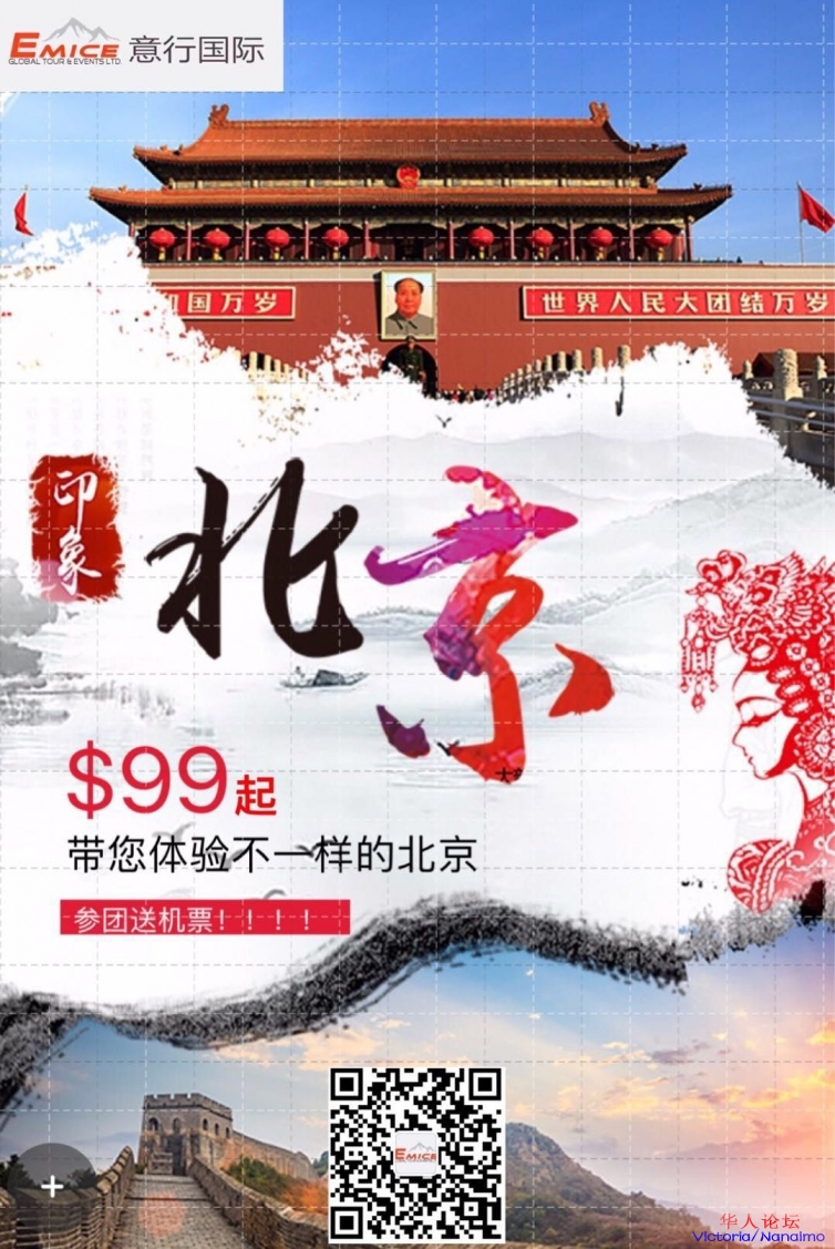 好消息!重大利好!即日起参加意行国际旅游中国特价团(北京、上海、广州等线路)送往返中国机票!详情请咨询意行国际旅游公司